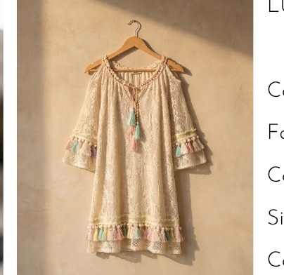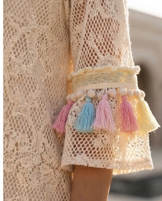 AMIRA LACE TASSELED DRESS — Organic Bamboo Lace — Natural Ivory / Multicolor Tassel Detail