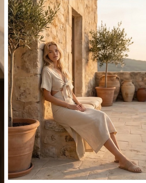 ELIRA BAMBOO MIDI DRESS — 100% Organic Bamboo — Natural Sand
