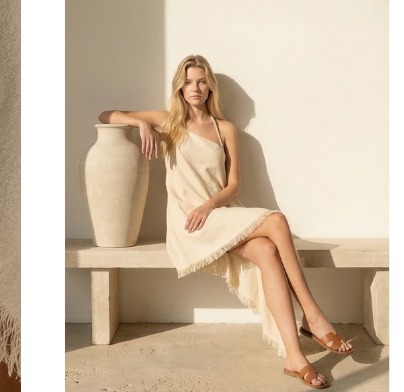 SORELLE BAMBOO ASYMMETRIC DRESS — 100% Organic Bamboo — Natural Beige